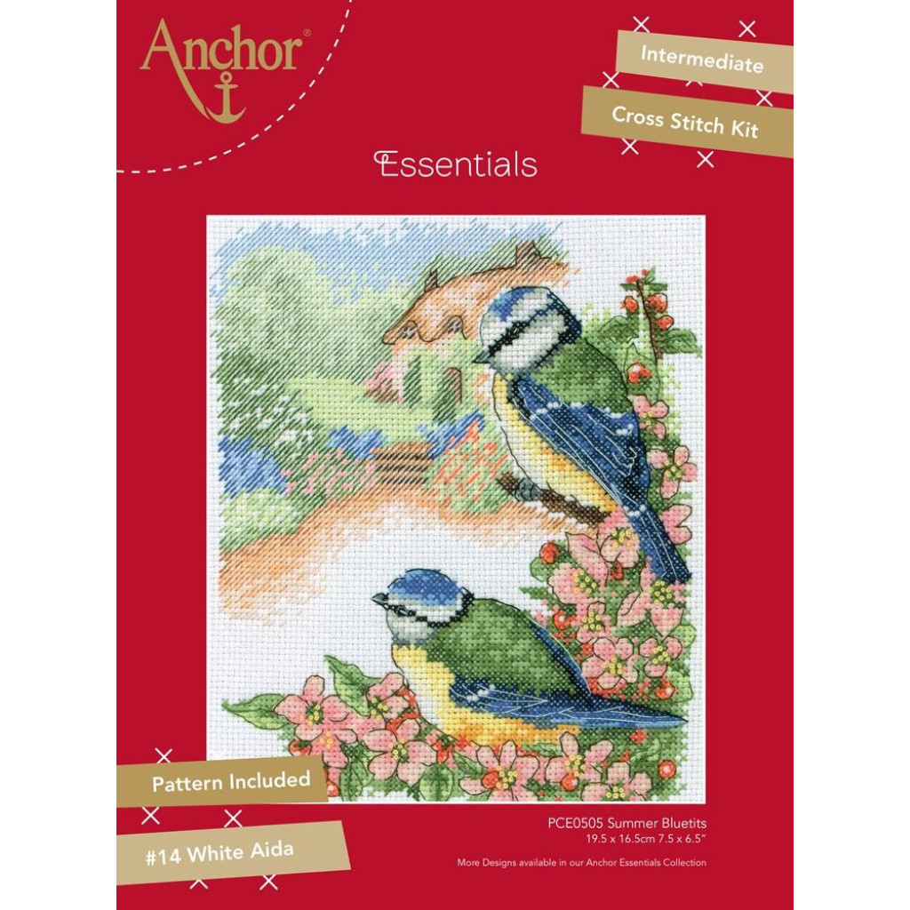 PCE0505 Anchor Набір для вишивки рахунковим хрестиком - Літні блакитні синиці Summer Blue Tit 19,5x16,5 см, Aida 14