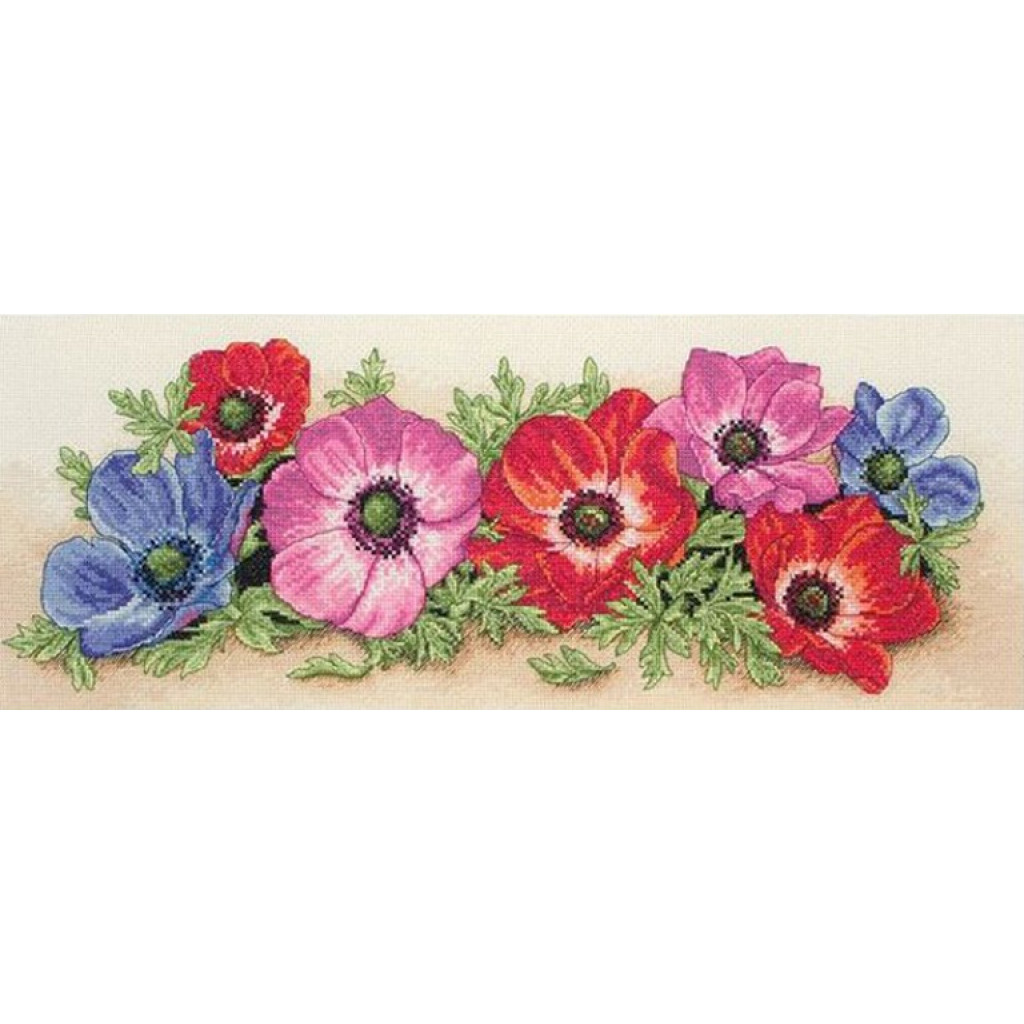 PCE733 Anchor Набір для вишивки рахунковим хрестиком - Розсип анемонів Spray Of Anemones 18x47 см, Aida 16