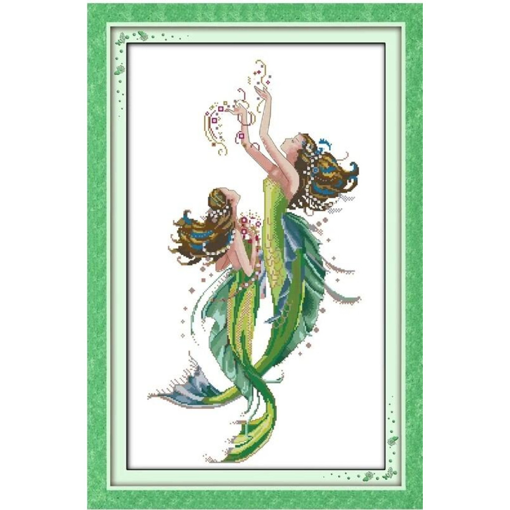 R189-1JS Joy Sunday Набір для вишивки друкованим хрестиком - Русалки 44x68 см, Aida14 (схема на канві)