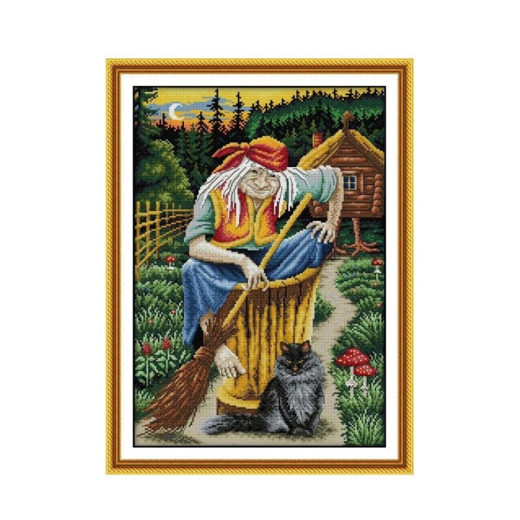 RA474JS Баба Яга у ступі, 35х48 см. Joy Sunday. Набір для вишивки хрестиком на канві з нанесеним малюнком