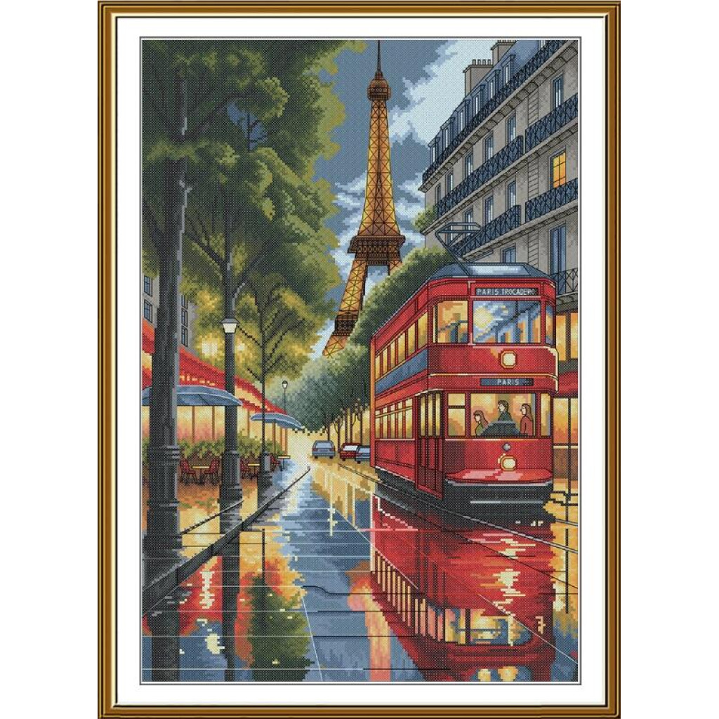 РЕ3622 Нова Слобода Набір для вишивки хрестиком - Паризький трамвайчик 28х42 см, Aida 16