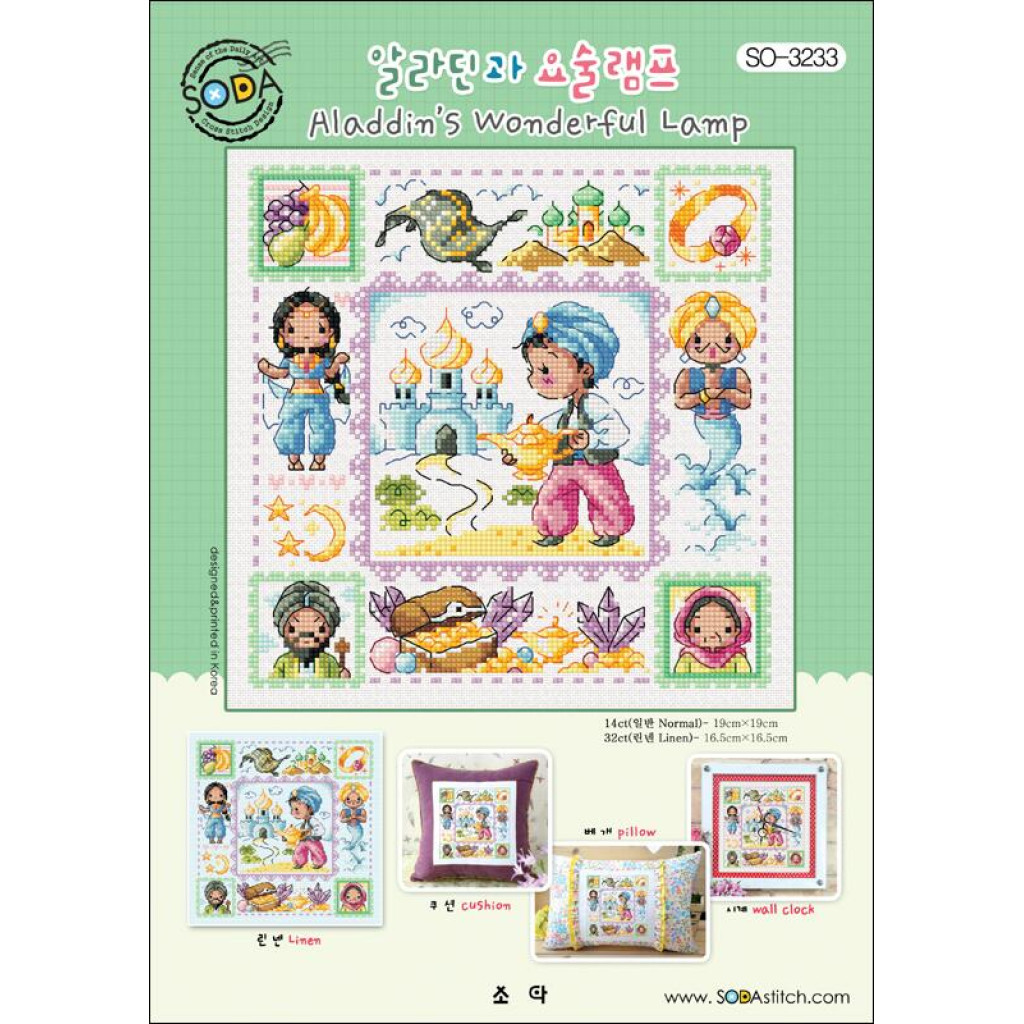 SO-3233L SODA Stitch Набір для вишивки рахунковим хрестиком - Чудова лампа Аладдіна Aladdin's wonderful lamp 16,5x16,5 см, Linen 32