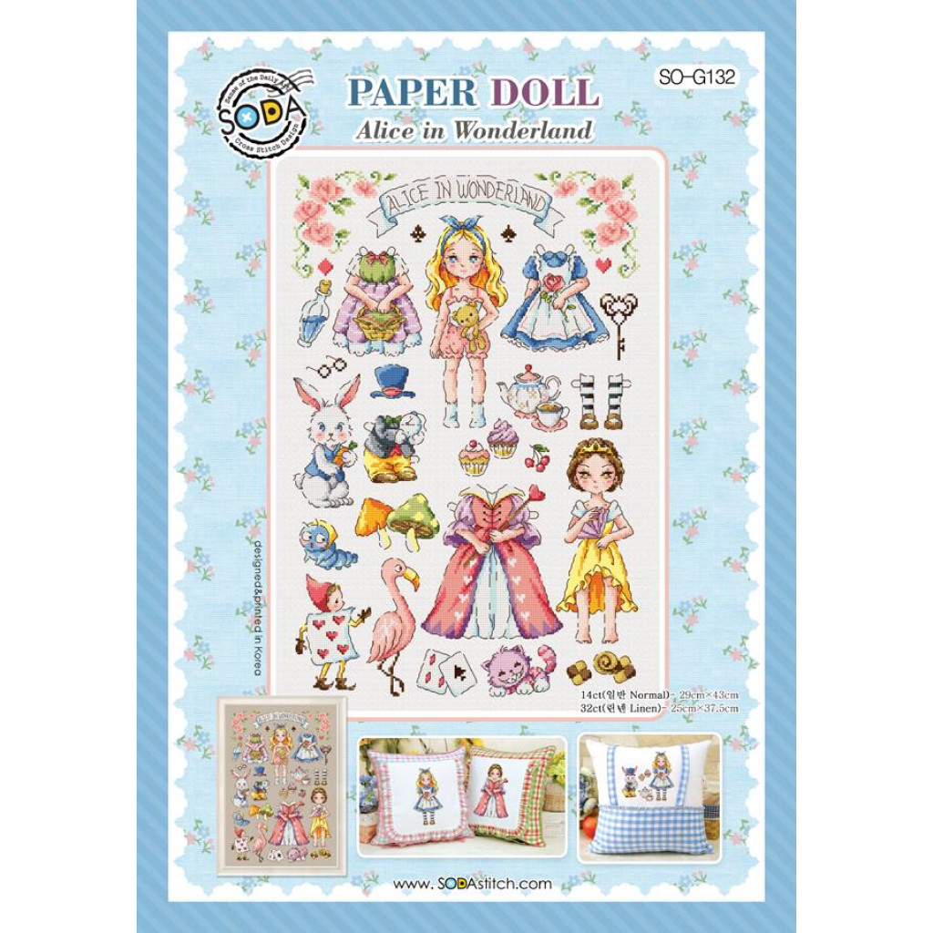 SO-G132 SODA Stitch Схема для вишивки рахунковим хрестиком - Паперова лялька - Аліса в країні чудес PAPER DOLL-Alice in Wonderland, папір