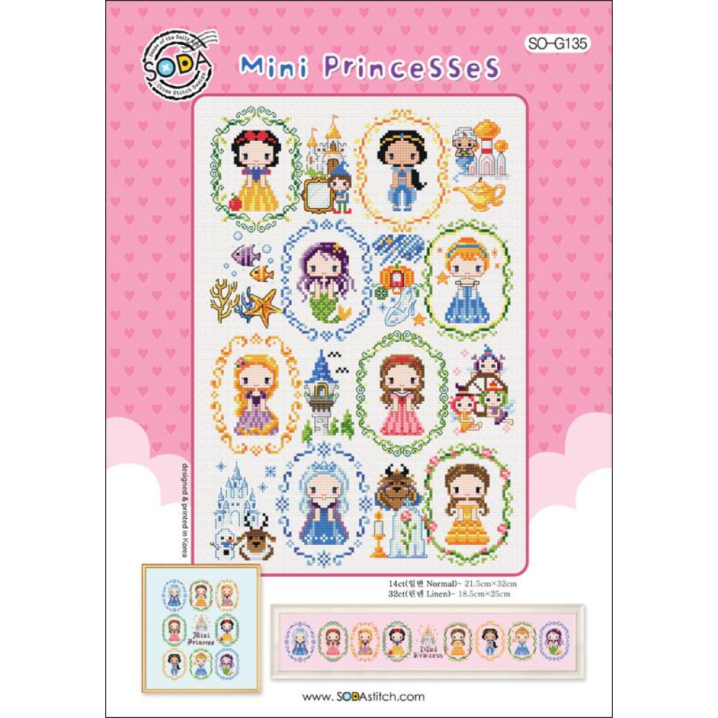 SO-G135 SODA Stitch Схема для вишивки рахунковим хрестиком - Міні-принцеси Mini Princesses, папір
