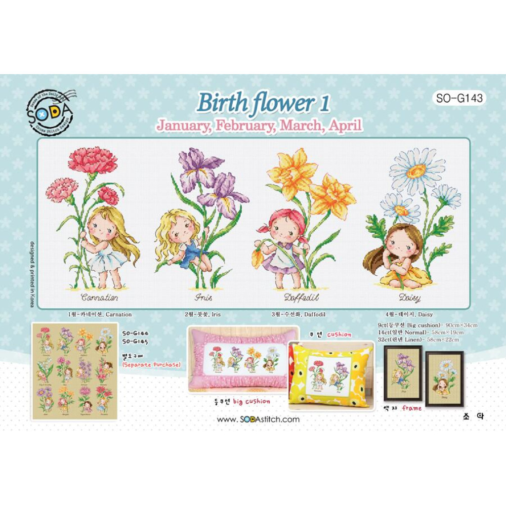 SO-G143 SODA Stitch Схема для вишивки рахунковим хрестиком - Народження квітки Birth flower 1, папір