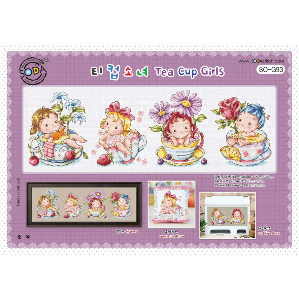 SO-G93 SODA Stitch Схема для вишивки рахунковим хрестиком - Чашка для дівчат Tea Cup Girls, папір