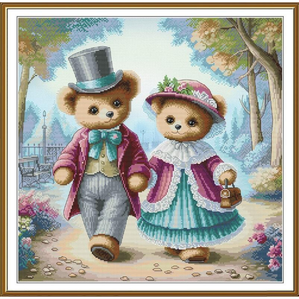 Основою для роботи є канва Aida 16 з фоновим малюнком, що допомагає краще передати атмосферу сюжету та надає готовій роботі більшої художньої виразності. Чітке переплетення ниток полегшує підрахунок хрестиків, а поєднання технік рахункового хрестика та бекстічу дозволяє акуратно опрацювати деталі й підкреслити контури зображення.