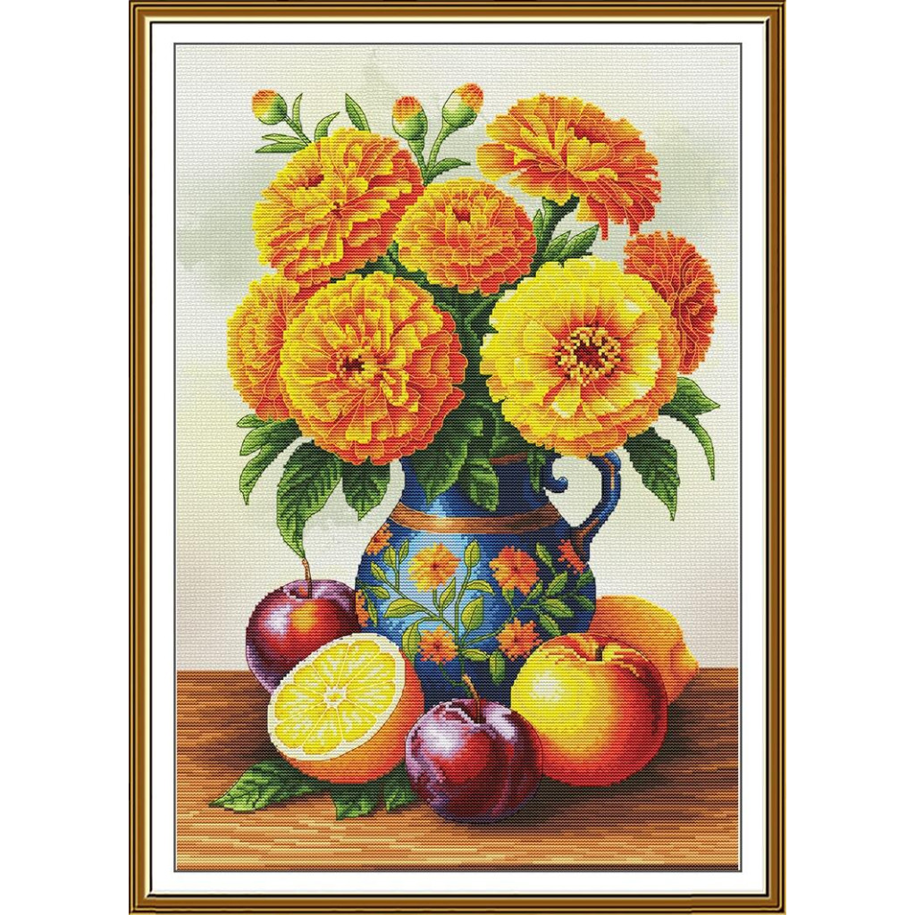 СР3457 Нова Слобода Набір для вишивки рахунковим хрестиком - Букет чорнобривців 30x44 см, Aida 16 (канва з фоном)