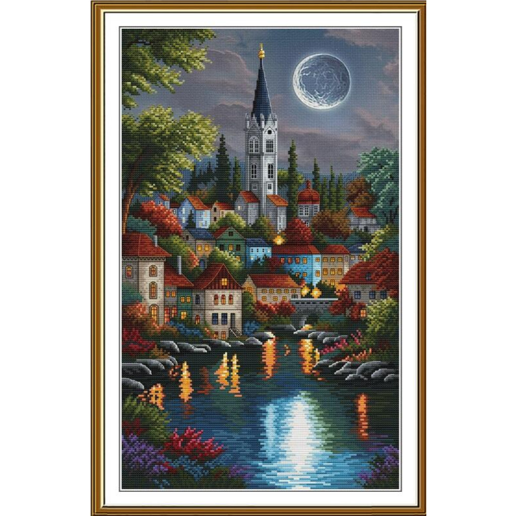 СР3474 Нова Слобода Набір для вишивки рахунковим хрестиком - Місячний краєвид 25x41 см, Aida 16 (канва з фоном)