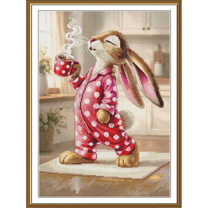 СР3487 Нова Слобода Набір для вишивки рахунковим хрестиком - Ранкова кавуся 25x35 см, Aida 16 (канва з фоном)