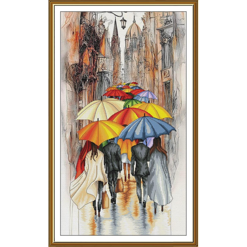 СР6298 Нова Слобода Набір для вишивки рахунковим хрестиком - Шербурські парасольки 30x53 см, Aida 16 (канва з фоном)