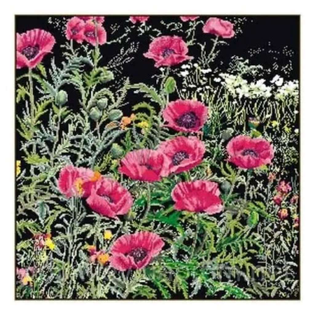 T2061.05 Thea Gouverneur Набір для вишивки рахунковим хрестиком - Рожеві маки 45х47 см, Aida 16 ct (колір чорний)
