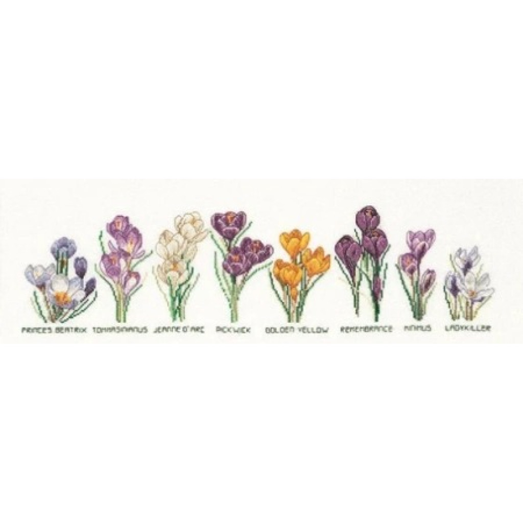 T3074A Thea Gouverneur Набір для вишивки рахунковим хрестиком - Панно крокусів 48х16 см, Aida 18 ct