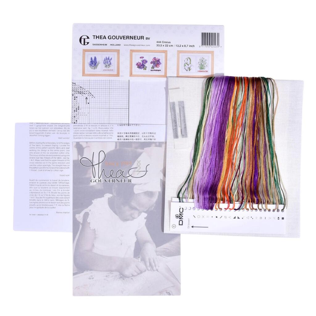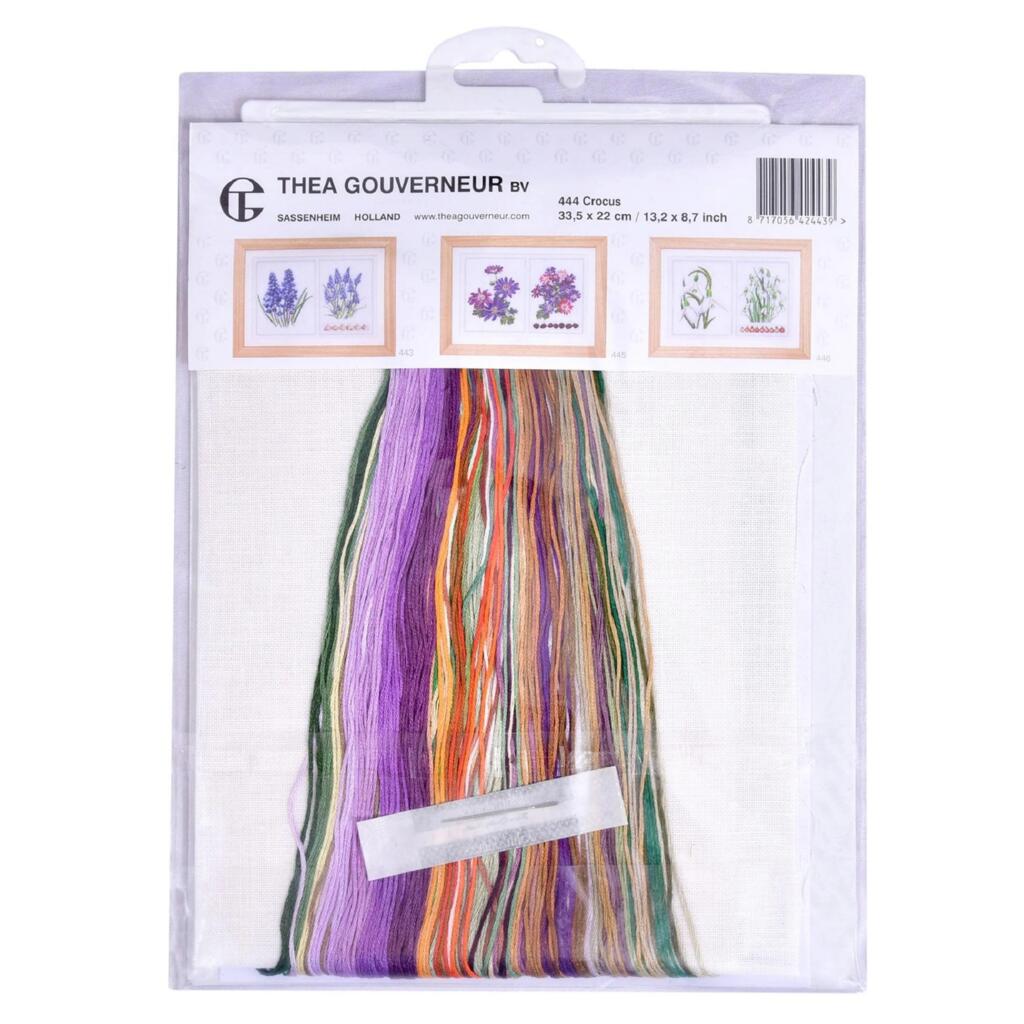 T444A Thea Gouverneur Набір для вишивки рахунковим хрестиком - Панно крокусів Crocus Panel 22x33 см, Aida 18