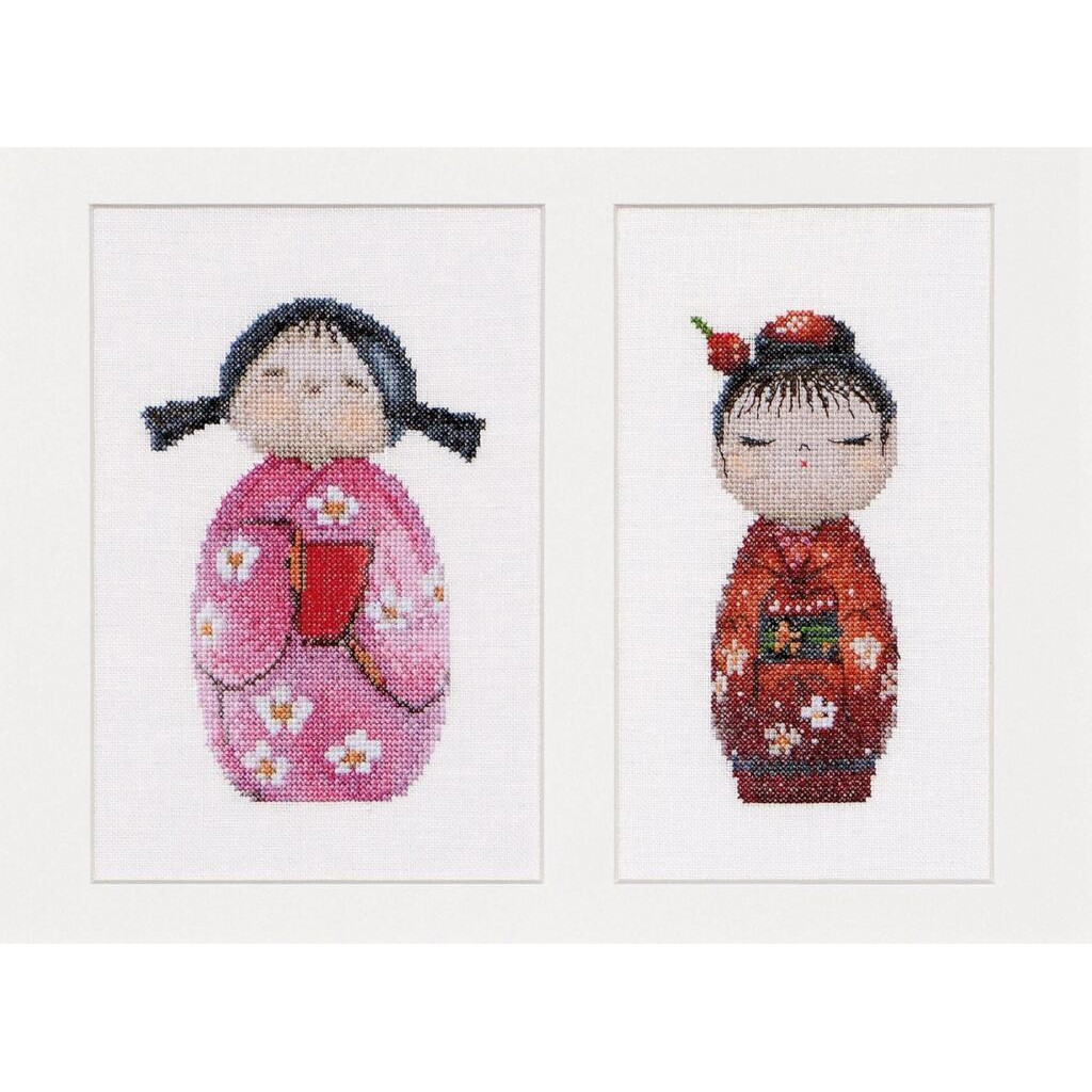 T547 Thea Gouverneur Набір для вишивки рахунковим хрестиком - Ляльки Кокеші 16х22 см, Льон 36 ct