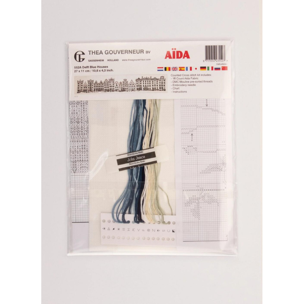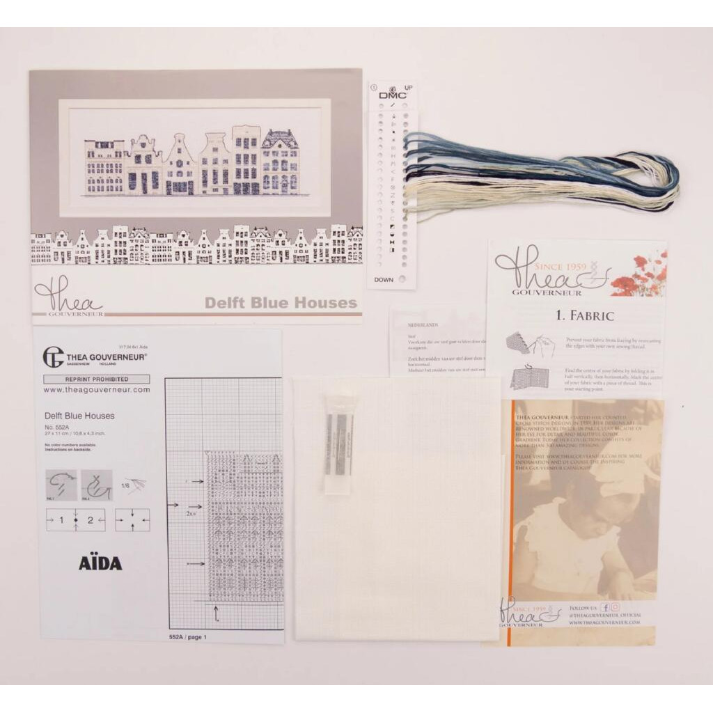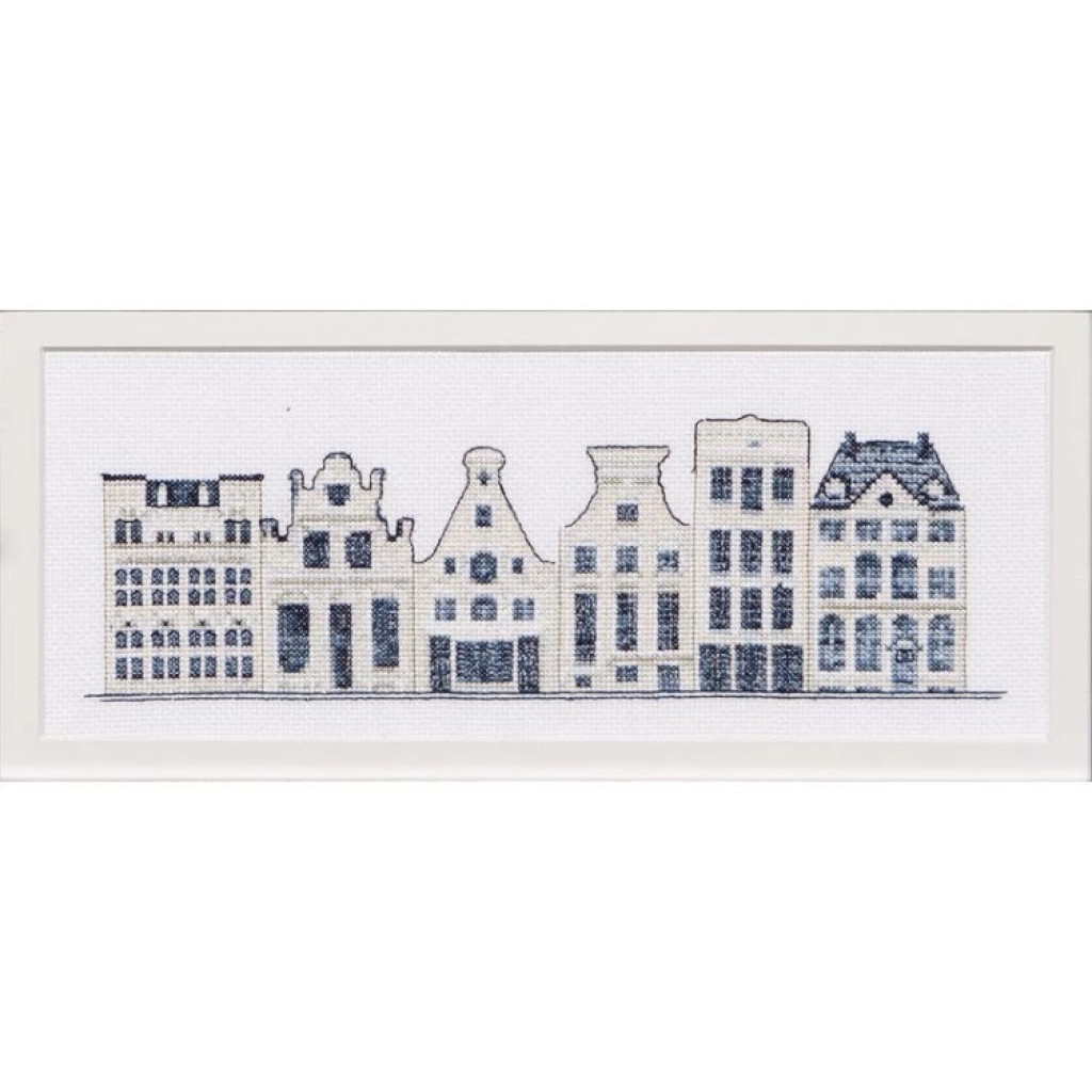 T552A Thea Gouverneur Набір для вишивки рахунковим хрестиком - Блакитні будинки Делфта Delft Blue Houses 11x27 см, Aida 18