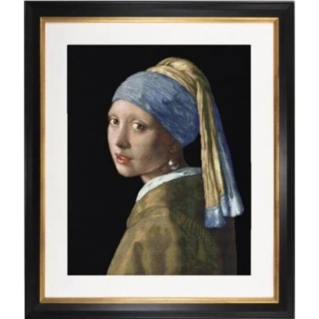 T582.05 Thea Gouverneur Набір для вишивки рахунковим хрестиком - Дівчина з перловою сережкою 40х50 см, Aida 16 ct (колір чорний)