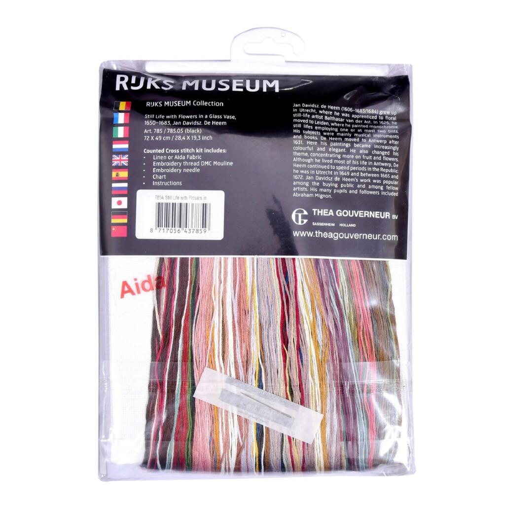 T785A Thea Gouverneur Набір для вишивки рахунковим хрестиком - Квіти в вазі Still Life with Flowers in a glass Vase 70x100 см, Aida 18