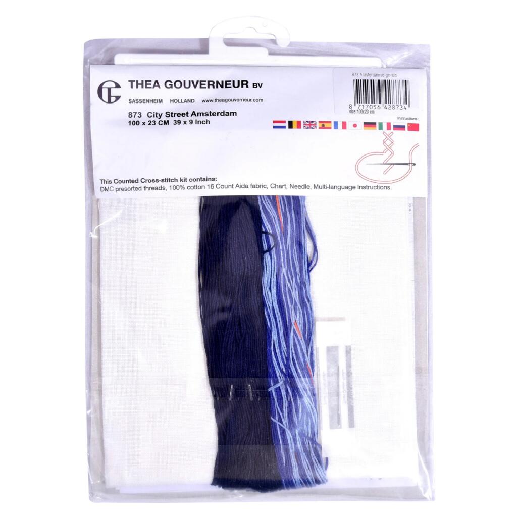 T873 Thea Gouverneur Набір для вишивки рахунковим хрестиком - Міська вулиця Амстердама City Street Amsterdam, 23x100 см, рівномірка 32 ct
