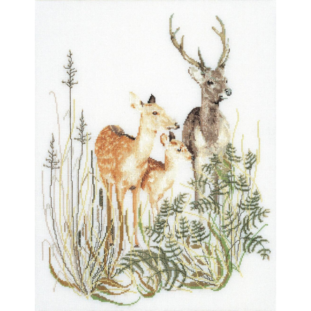 T938 Thea Gouverneur Набір для вишивки рахунковим хрестиком - Сім'я оленів 36х46 см, Льон 32 ct