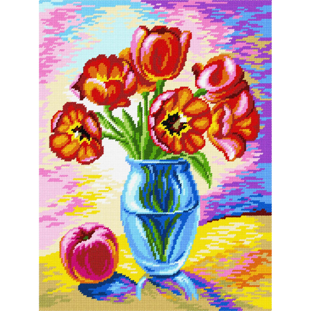 TJ27 Quick Tapestry Набір для вишивки друкованим гобеленом - Ваза з тюльпанами 36x57см (схема на страміні)