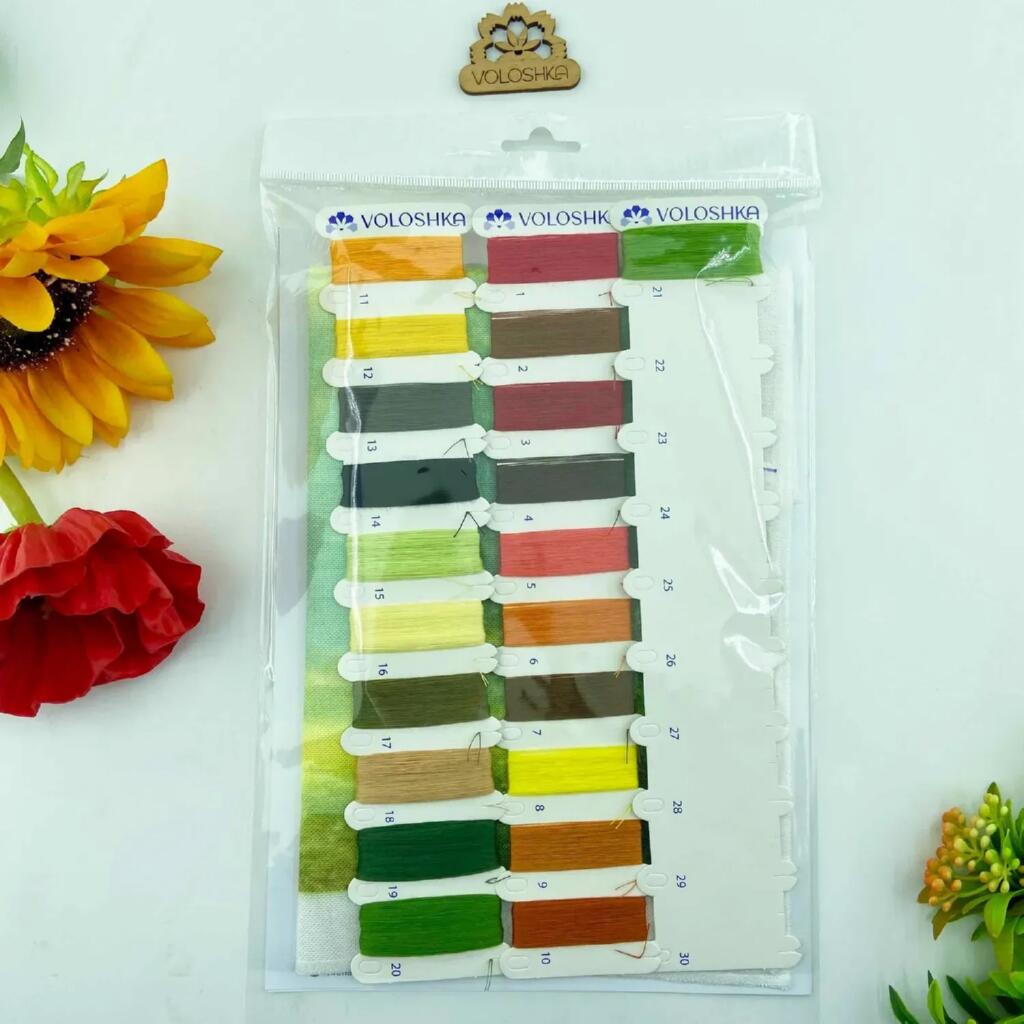 Набір укомплектований усім необхідним для вишивання, тому можна одразу приступати до роботи без додаткових пошуків матеріалів.
