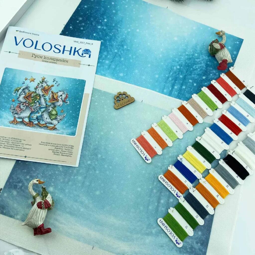 VMC_1017 Voloshka Набір для вишивки рахунковим хрестиком - Гуси колядники 27,5x27,5 см, Aida 16 (канва з фоном)
