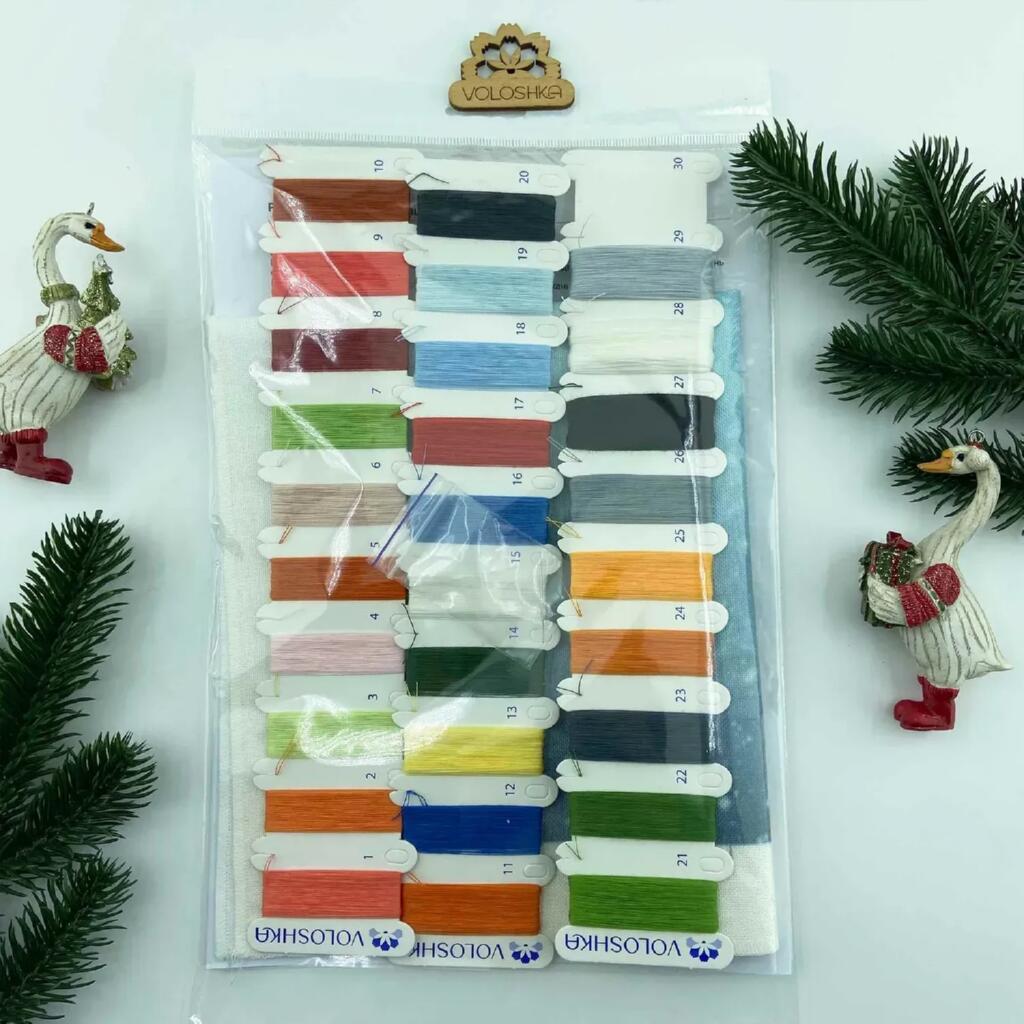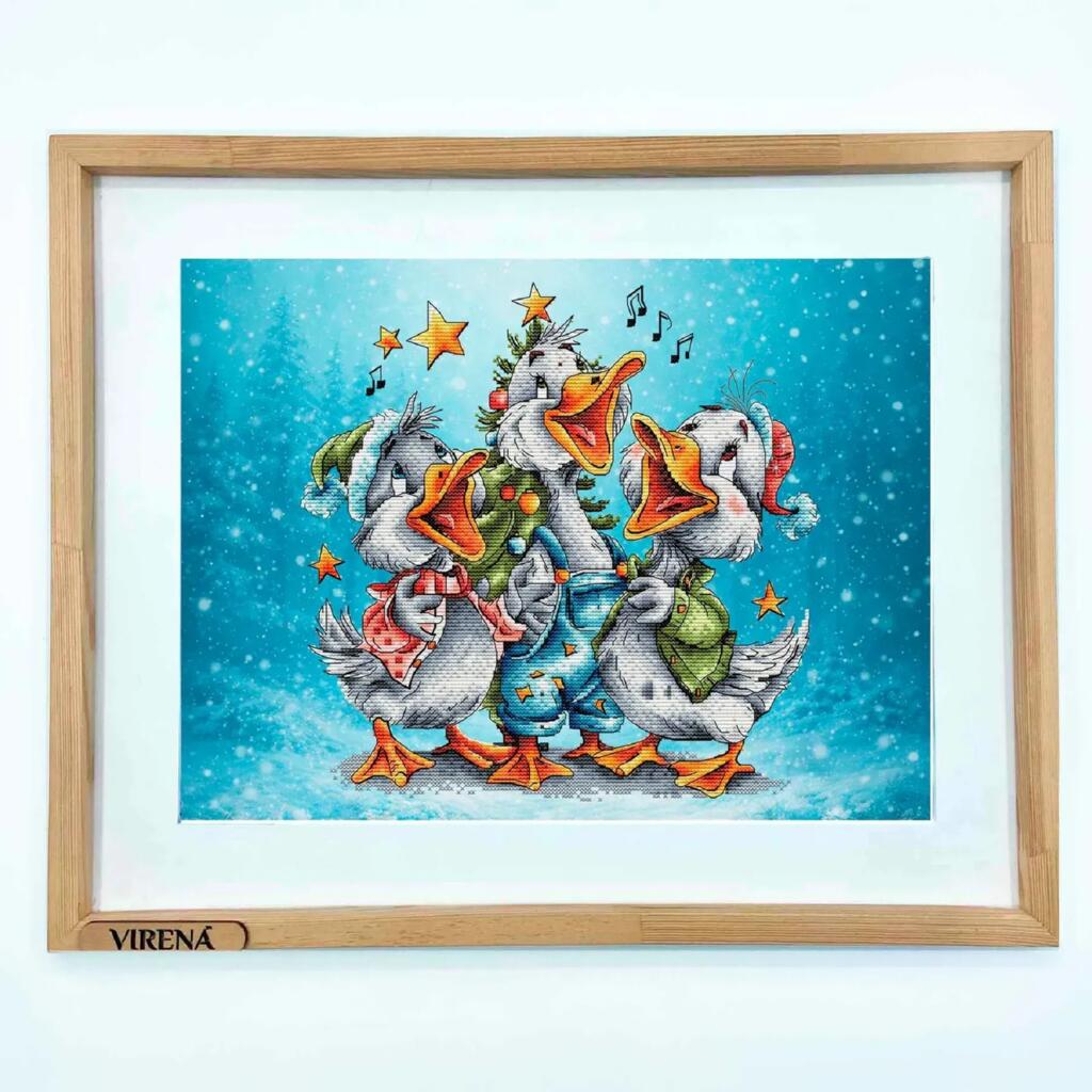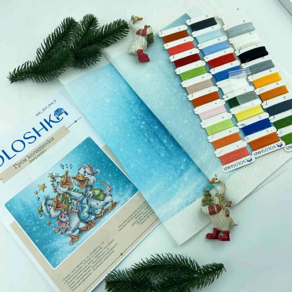 VMC_1017_R Voloshka Набір для вишивки рахунковим хрестиком - Гуси колядники 27,5x27,5 см, рівномірка 32 ct (канва з фоном)