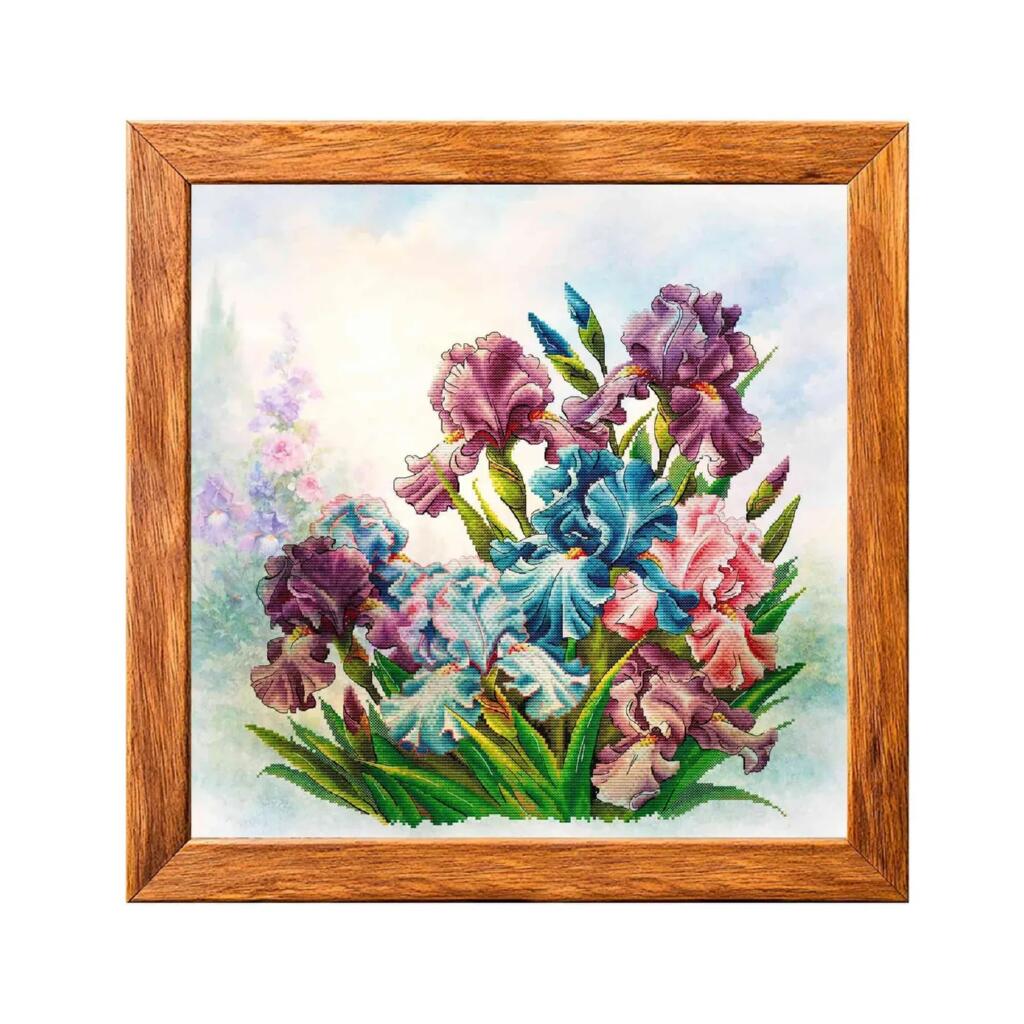 VMC_1027 Voloshka Набір для вишивки рахунковим хрестиком - Іриси 33x33 см, Aida 16 (канва з фоном)