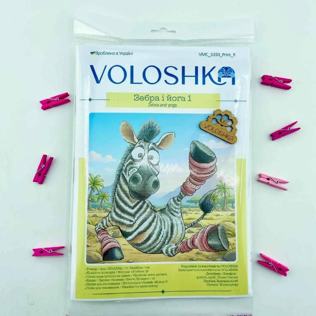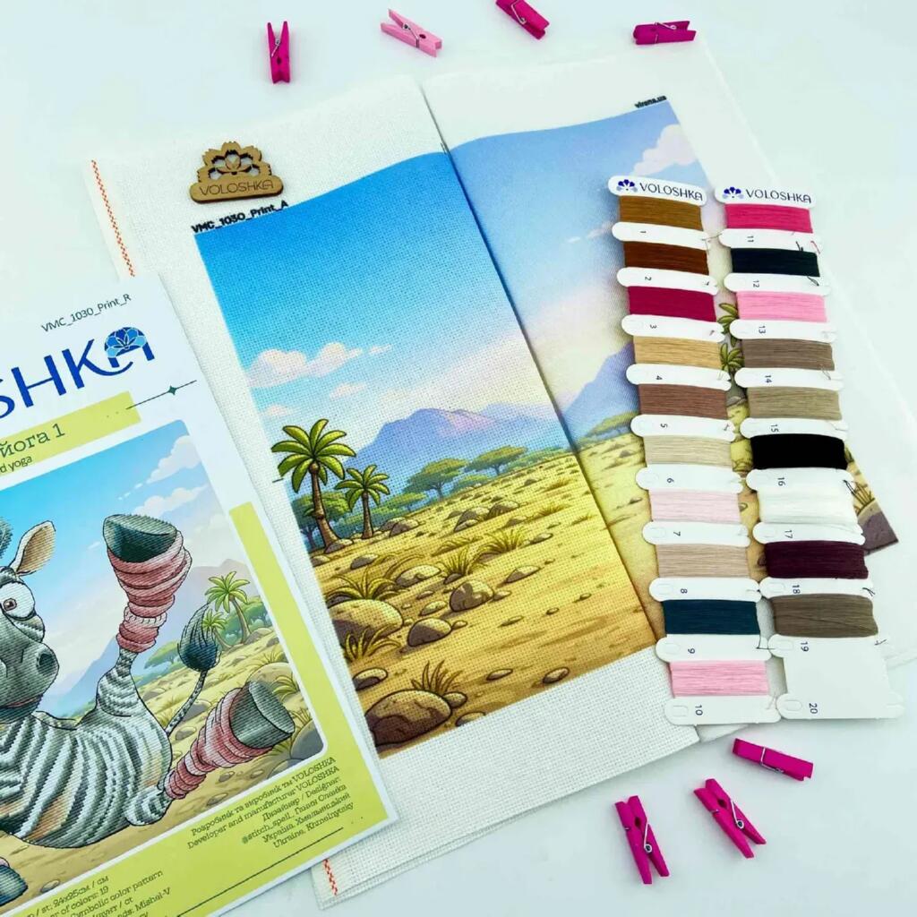 VMC_1030 Voloshka Набір для вишивки рахунковим хрестиком - Зебра і йога 1 24x25 см, Aida 16 (канва з фоном)