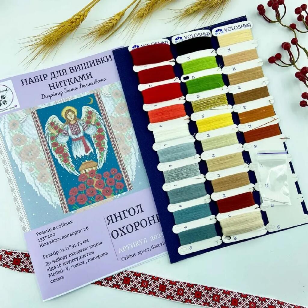 VMC_202514_MV Voloshka Янгол охоронець — набір для вишивання у техніці рахункового хрестика. У комплектації використані перевірені та якісні матеріали: нитки Mishel-V та принтована канва Aida 16. Завдяки продуманому підбору матеріалів зручно розпочати роботу одразу після отримання набору, а чітка схема та інструкція допомагають швидко зорієнтуватися в процесі вишивання та отримати охайний результат.