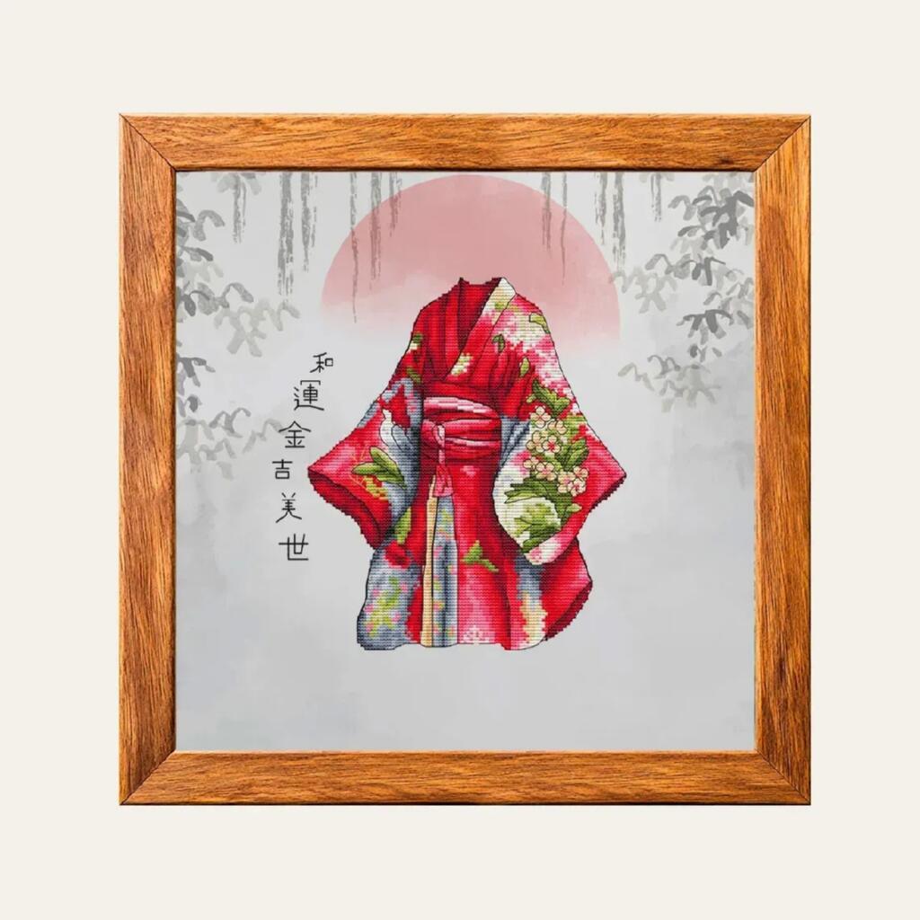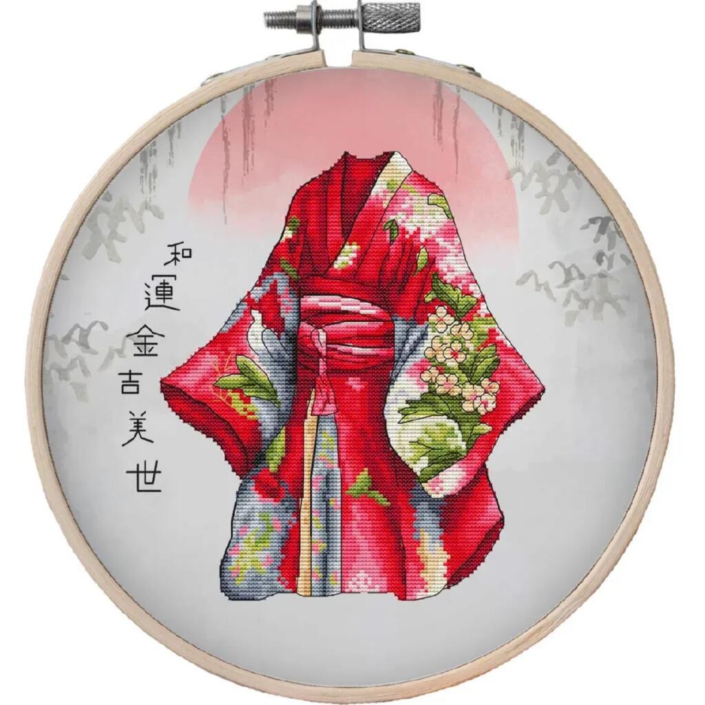VМС_1007_Print_R Voloshka Набір для вишивки рахунковим хрестиком - Кімоно 21x22 см, рівномірка 32 ct (канва з фоном)
