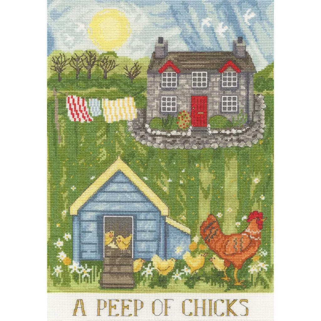 XDD12 Bothy Threads Набір для вишивки хрестиком - Писк курчат A Peep Of Chicks 26x36 см, Aida 14