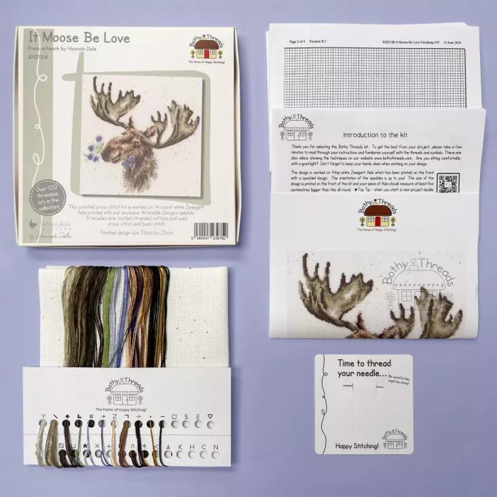 XHD108E Bothy Threads Набір для вишивки хрестиком - Це має бути любов It Moose Be Love 26x26 см, Evenweave №28