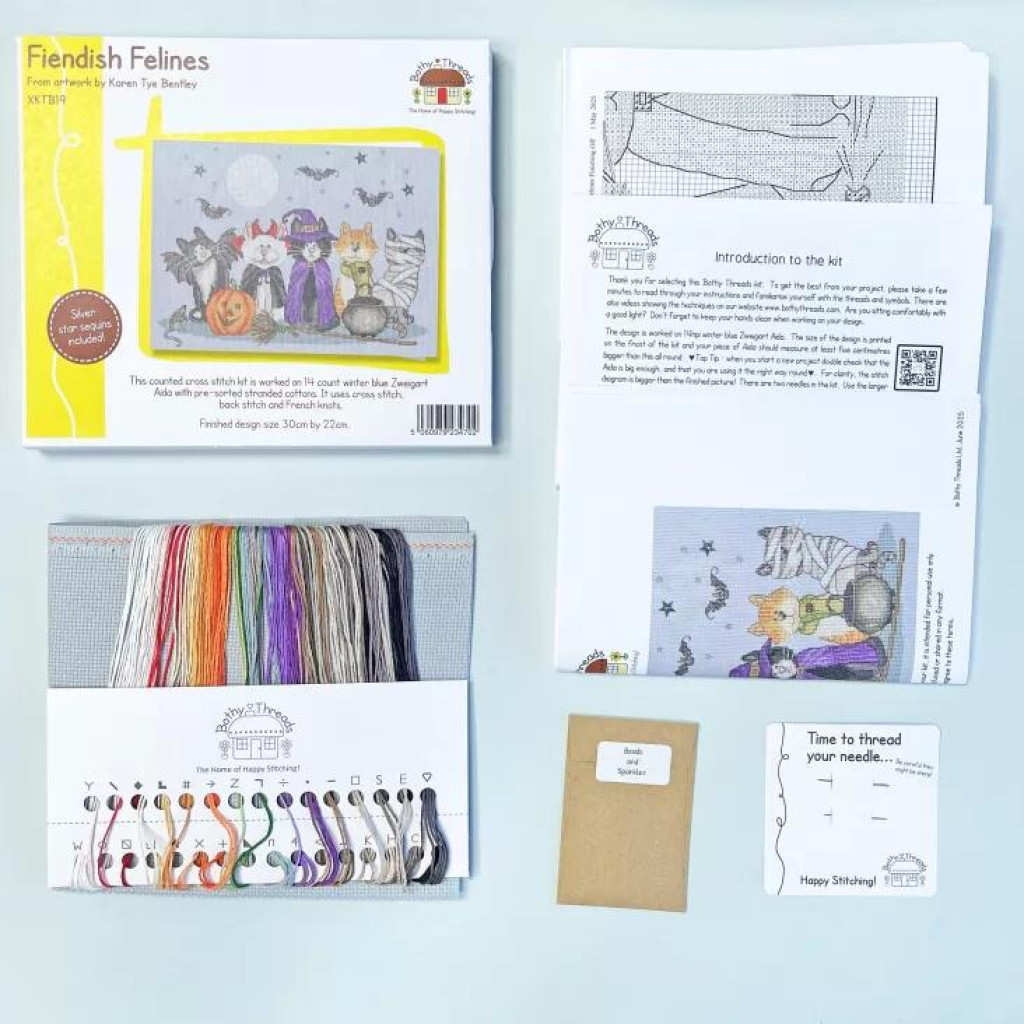 XKTB19 Bothy Threads Набір для вишивки хрестиком - Котячі Fiendish Felines 22x30 см, Aida 14