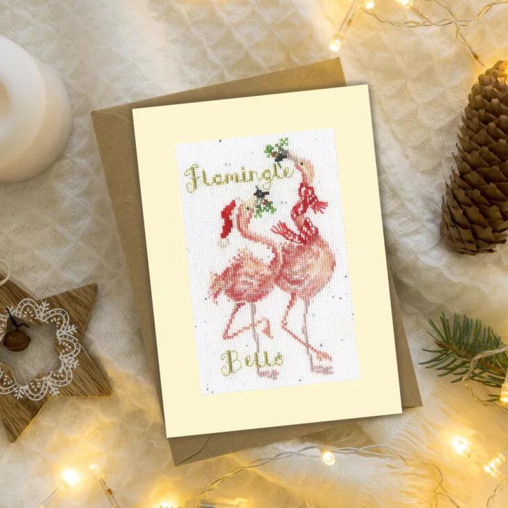 XMAS68E Bothy Threads Набір для вишивки хрестиком - Дзвони Flamingle Bells Card 16x10 см, Evenweave №32