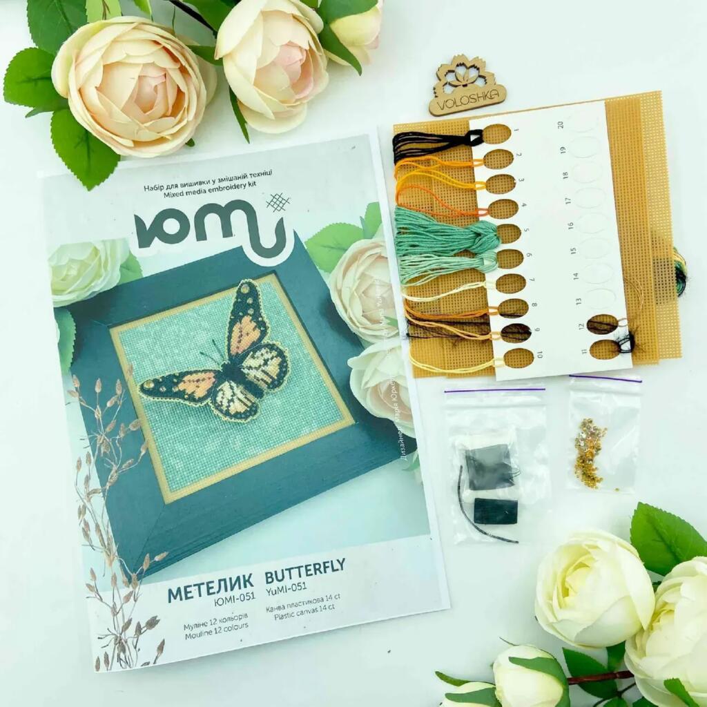 YuMI_051 Voloshka Набір для вишивки хрестом та бісером по пластику YuMI - Метелик 12,7x12,7 см, Aida 14 ct