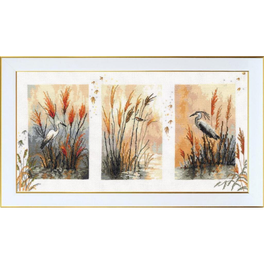 М-0370 VDV Набір для вишивки рахунковим хрестиком - Триптих. Чаплі 38х20 см, Aida 16