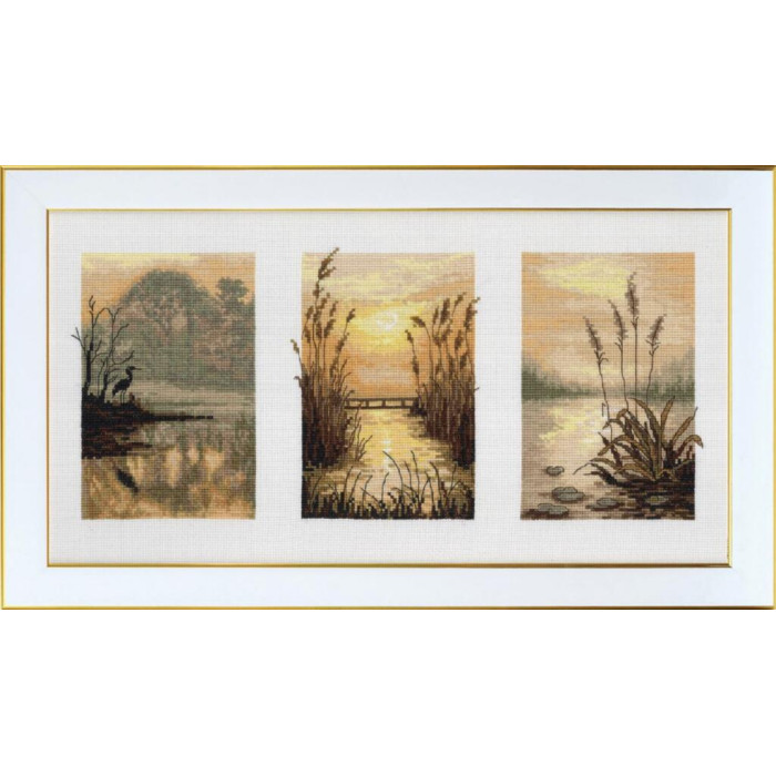М-0393 VDV Набір для вишивки рахунковим хрестиком - Триптих. Ранкова димка 38x20 см, Aida 16