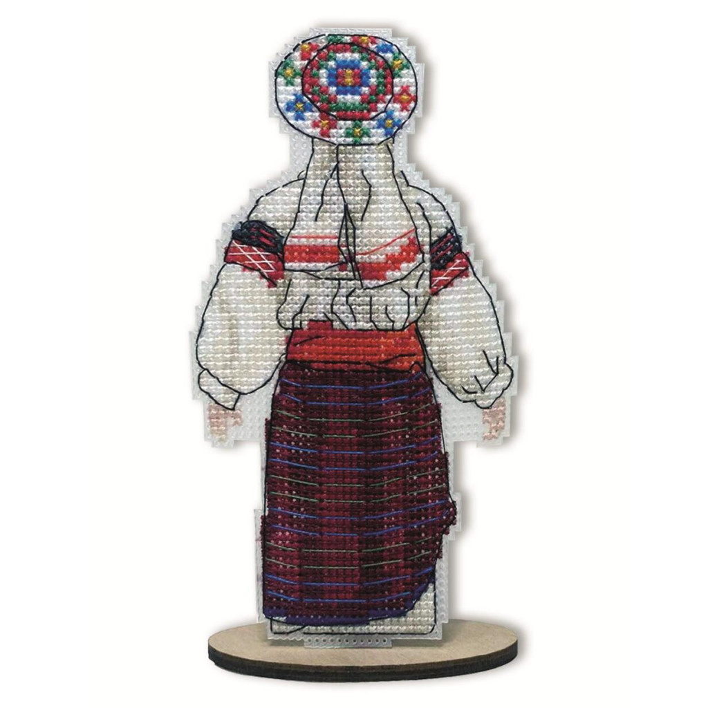 Набір для вишивки від Alisena дозволяє створити оригінальну текстильну іграшку у формі ляльки-мотанки — символу українських традицій, домашнього затишку та оберегового змісту. Робота виконується у техніці рахункового хрестика на пластиковій канві, що добре тримає форму та підходить для створення декоративних фігурок.