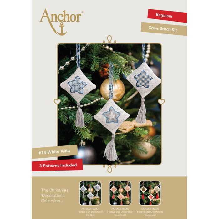 AKE0006-0001 Anchor Набір для вишивки рахунковим хрестиком - Голубі зірки Stars: Ice Blue 19,5x16,5 см, Aida 14