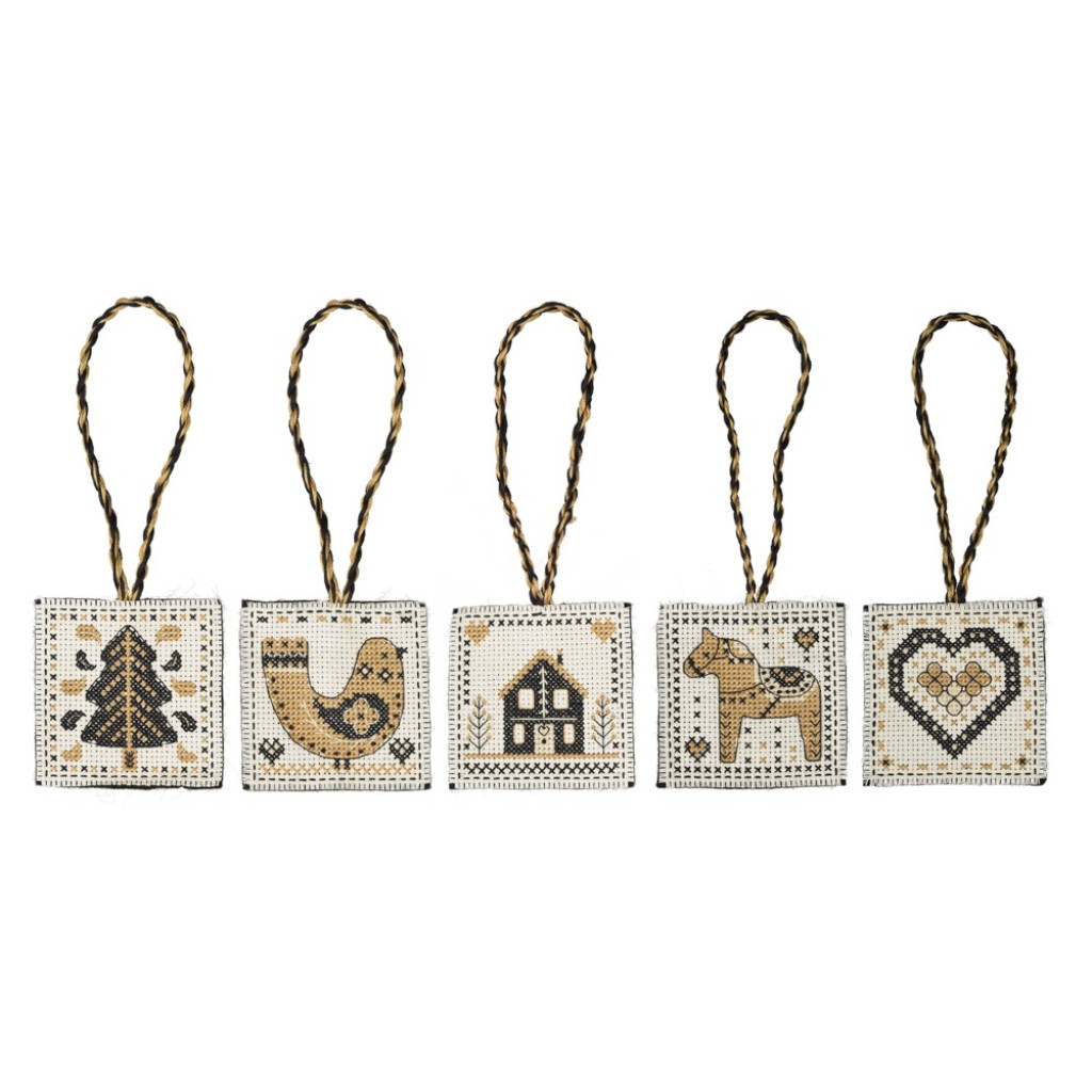 Набір для вишивки Різдвяні прикраси Christmas Decoration: Black and Gold від Anchor дозволяє створити оригінальні декоративні підвіски із зимовим сюжетом. Комплект містить усі необхідні матеріали для якісної та приємної роботи над вишивкою.