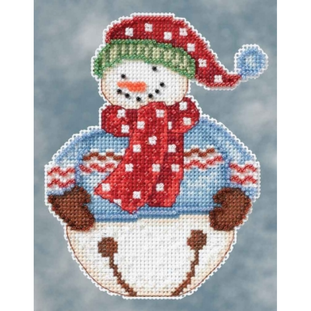 DM204101 Mill Hill Набір для вишивки рахунковим хрестиком + бісером - Іграшка Сніговик Jingle Snowbell 10x13 см, перфорований папір