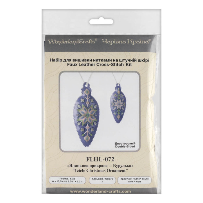 Кожен набір містить заготовки з якісної штучної шкіри, які ви вишиваєте нитками за схемою. Після завершення половинки легко зшиваються між собою і готова чарівна прикраса, яку можна повісити на ялинку за допомогою декоративної стрічки. Іграшка виходить двосторонньою, тобто однаково красивою з обох боків. Такі набори не лише прикрасять вашу ялинку, а й стануть чудовим подарунком для рукодільниці або для себе коханої.