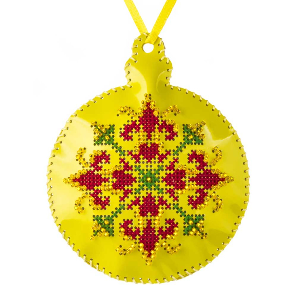 Кожен набір містить заготовки з якісної штучної шкіри, які ви вишиваєте нитками за схемою. Після завершення половинки легко зшиваються між собою і готова чарівна прикраса, яку можна повісити на ялинку за допомогою декоративної стрічки. Іграшка виходить двосторонньою, тобто однаково красивою з обох боків. Такі набори не лише прикрасять вашу ялинку, а й стануть чудовим подарунком для рукодільниці або для себе коханої.