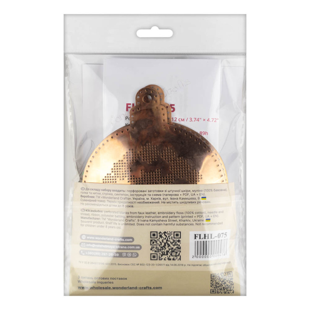 Набір для вишивки нитками на екошкірі, укомплектований усіма необхідними матеріалами для виготовлення готової прикраси, а саме: