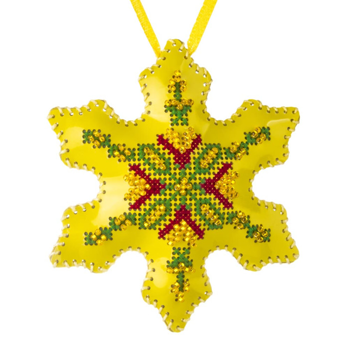 Кожен набір містить заготовки з якісної штучної шкіри, які ви вишиваєте нитками за схемою. Після завершення половинки легко зшиваються між собою і готова чарівна прикраса, яку можна повісити на ялинку за допомогою декоративної стрічки. Іграшка виходить двосторонньою, тобто однаково красивою з обох боків. Такі набори не лише прикрасять вашу ялинку, а й стануть чудовим подарунком для рукодільниці або для себе коханої.