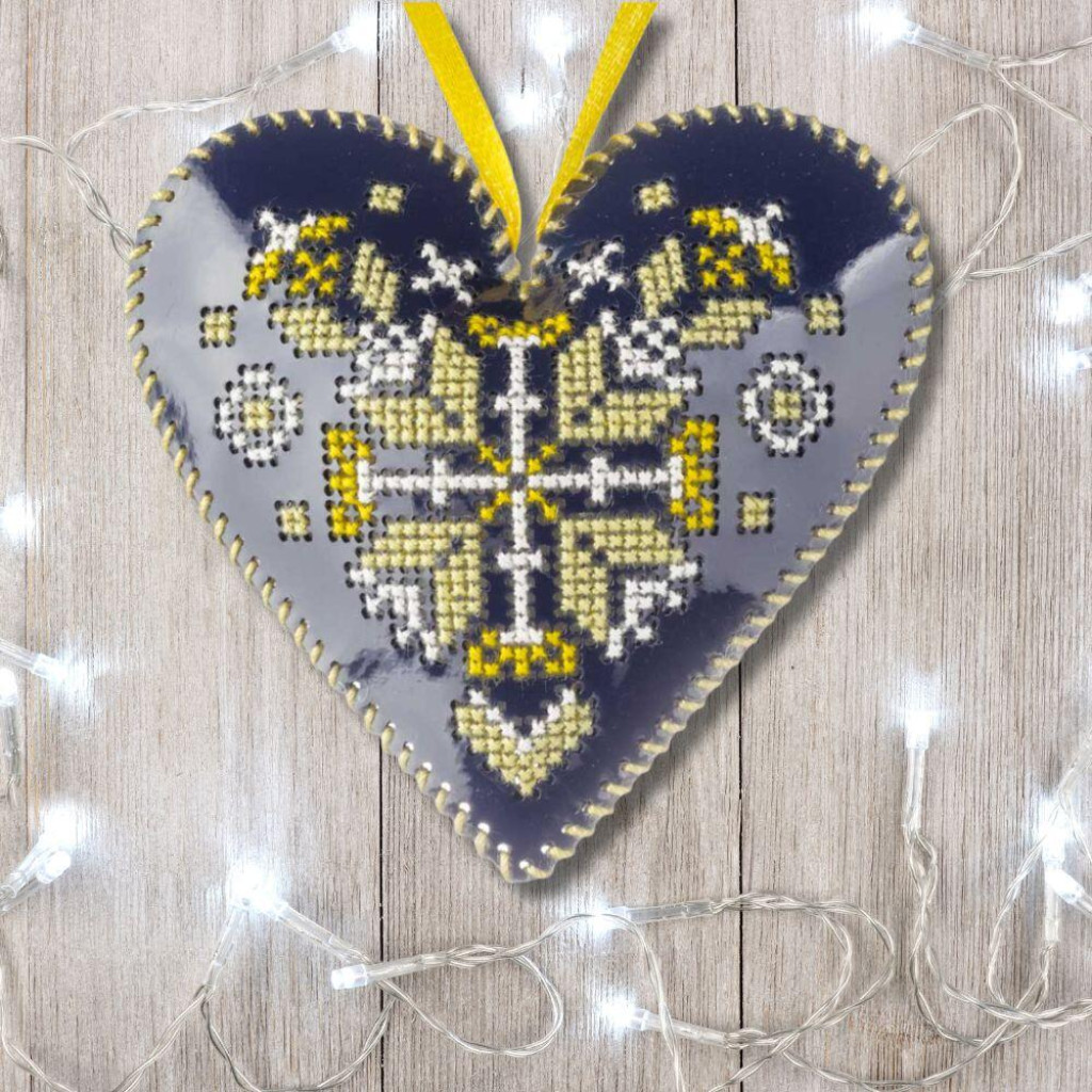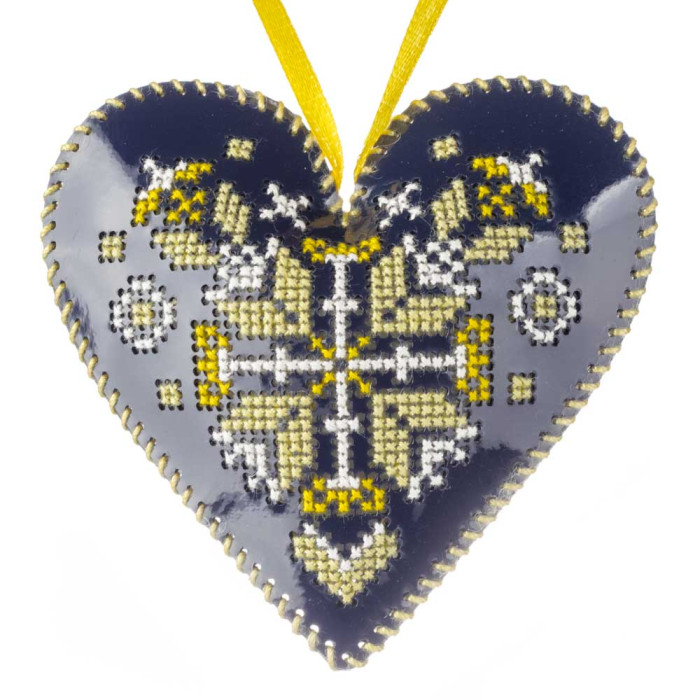 Кожен набір містить заготовки з якісної штучної шкіри, які ви вишиваєте нитками за схемою. Після завершення половинки легко зшиваються між собою і готова чарівна прикраса, яку можна повісити на ялинку за допомогою декоративної стрічки. Іграшка виходить двосторонньою, тобто однаково красивою з обох боків. Такі набори не лише прикрасять вашу ялинку, а й стануть чудовим подарунком для рукодільниці або для себе коханої.