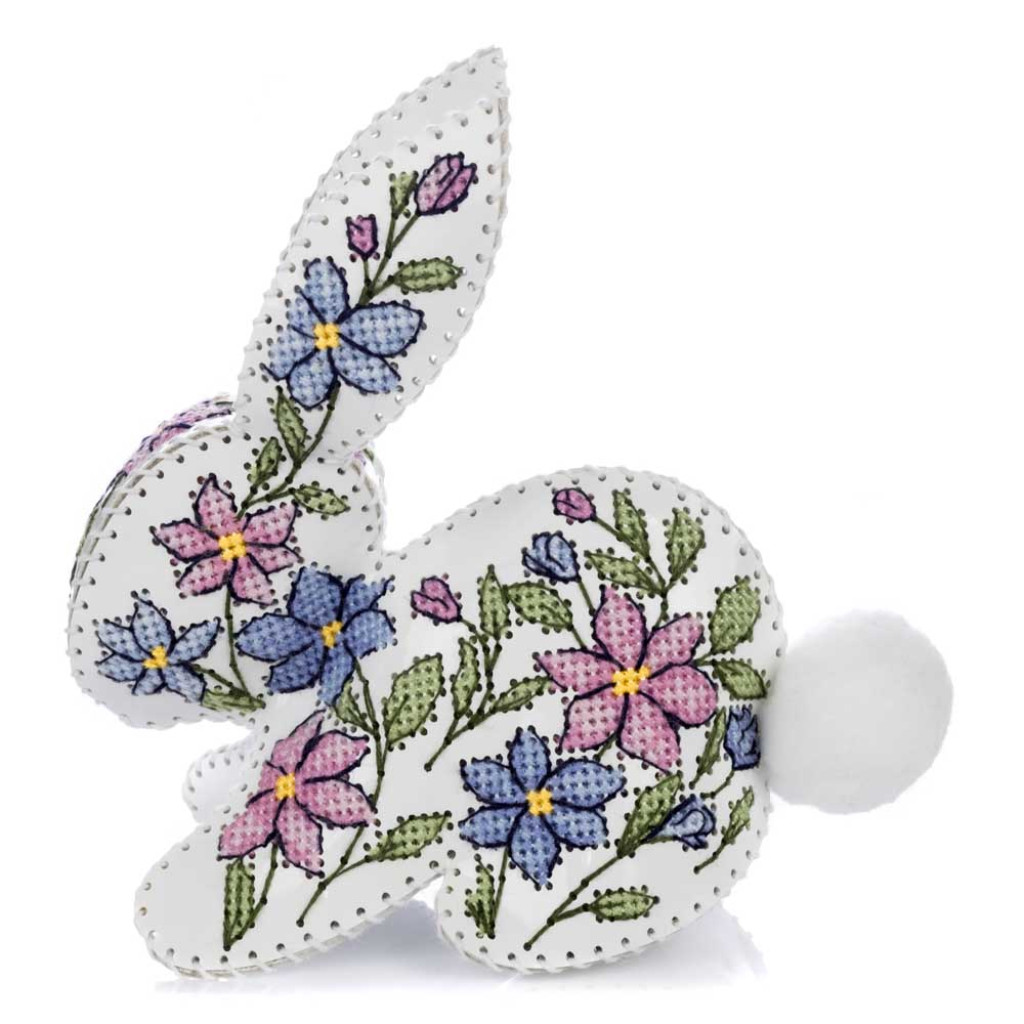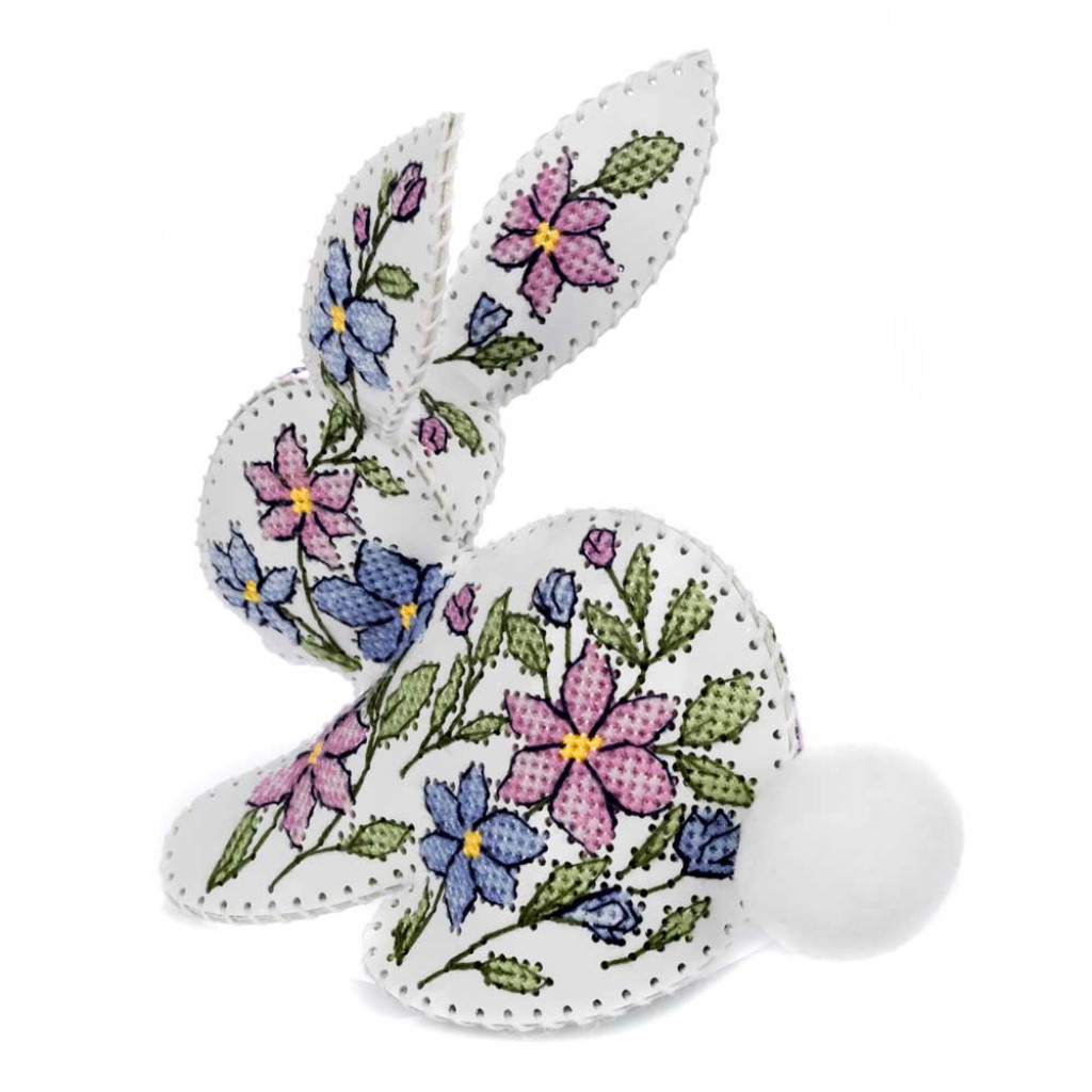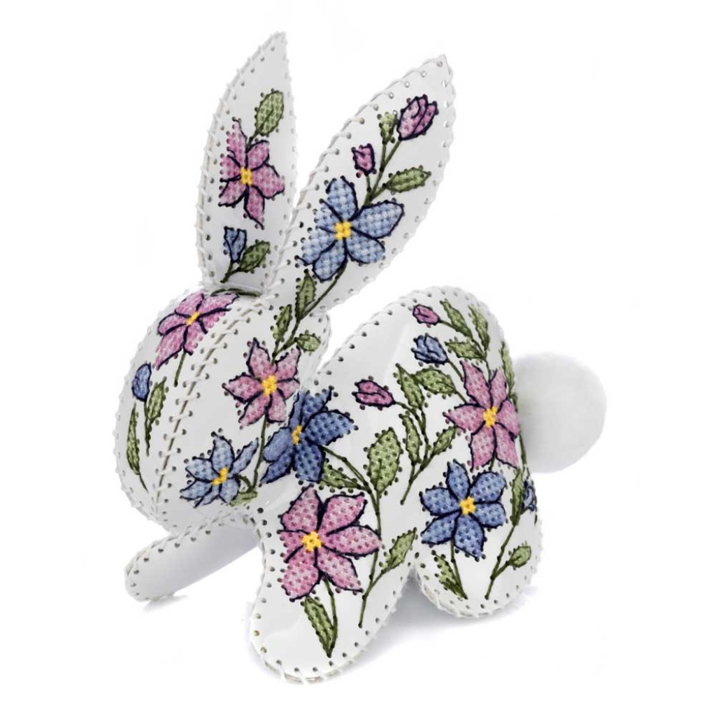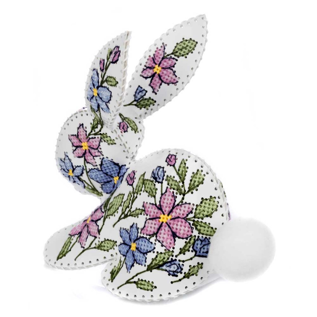 FLHL-120 Wonderland Crafts Набір для вишивки друкованим хрестиком на штучній шкірі - Кролик з квітковим візерунком, 12,5x12,5x6,5 см