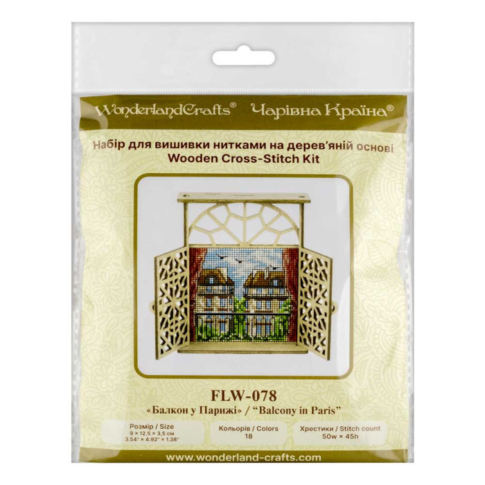 FLW-078 Wonderland Сrafts Набір для вишивки рахунковим хрестиком по дереву - Іграшка Балкон у Парижі 9x12,5x3,5 см